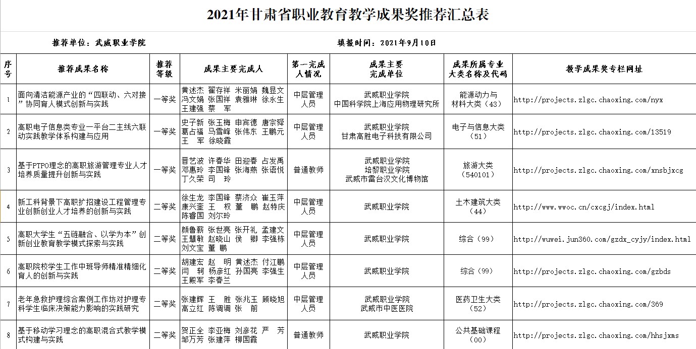 2021年甘肅省職業(yè)教育教學成果獎申報