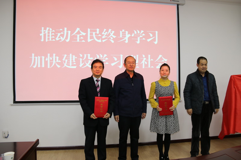 啟動儀式對獲得2017年我市榮獲全國、全省“百姓學習之星”“終身學習品牌項目”“優(yōu)秀成人繼續(xù)教育院校(培訓機構)”等獲獎個人和單位進行了表彰。市教育局局長李忠民、武威職業(yè)學院副院長翟存祥對獲獎單位和個人進行了頒獎。市教育局職成教科負責人李學德宣讀成立“武威市社區(qū)教育指導服務中心”的文件,由市教育局局長李忠民、武威職業(yè)學院副院長翟存祥為“武威市社區(qū)教育指導服務中心”揭牌。張應偉對《武威市教育局等九部門<關于進一步推進社區(qū)教育發(fā)展意見的實施方案》文件精神進行了傳達。