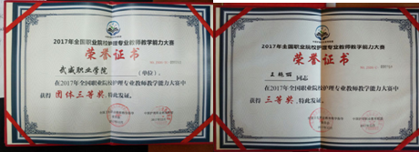 護(hù)理專業(yè)是我院優(yōu)質(zhì)校建設(shè)特色專業(yè)之一,為展示新時(shí)期我院教師高超的技術(shù)水平和良好的精神風(fēng)貌, 12月15日至17日我院王艷麗、張前兩名教師參加在山東省濱州職業(yè)學(xué)院舉行的首屆全國職業(yè)院校護(hù)理專業(yè)教師教學(xué)能力大賽。經(jīng)過激烈的比拼爭奪,我院代表隊(duì)獲得團(tuán)體三等獎、王艷麗獲個人三等獎、張前獲優(yōu)秀獎。