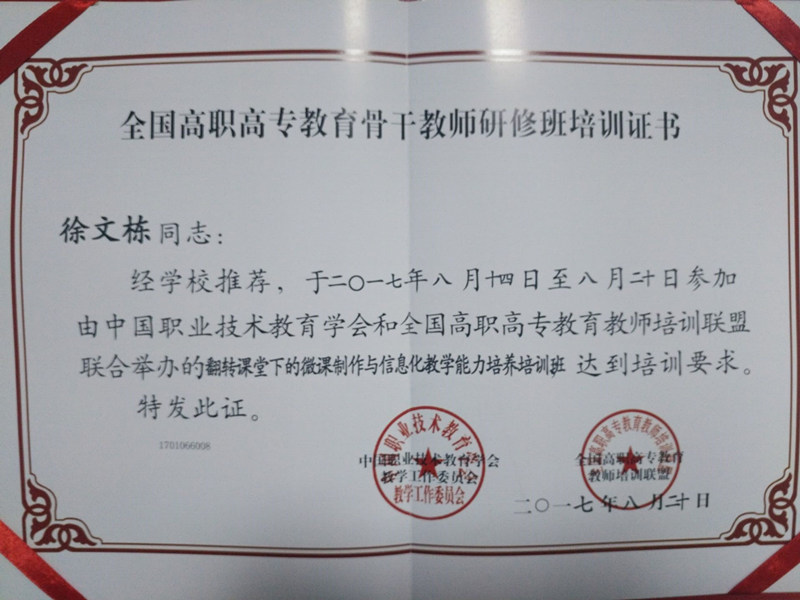 優(yōu)質(zhì)校建設(shè)之高校教師教學能力、信息技術(shù)與專業(yè)素養(yǎng)提升高級培訓班總結(jié)及證書——徐文棟