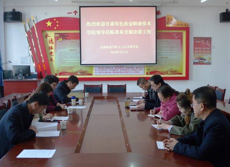 3月7日上午,甘肅有色冶金職業(yè)技術(shù)學(xué)院教育系負(fù)責(zé)人妙學(xué)春一行4人蒞臨我系進(jìn)行交流學(xué)習(xí),系黨總支書(shū)記胡靜峰、各教研室主任參加了會(huì)議。