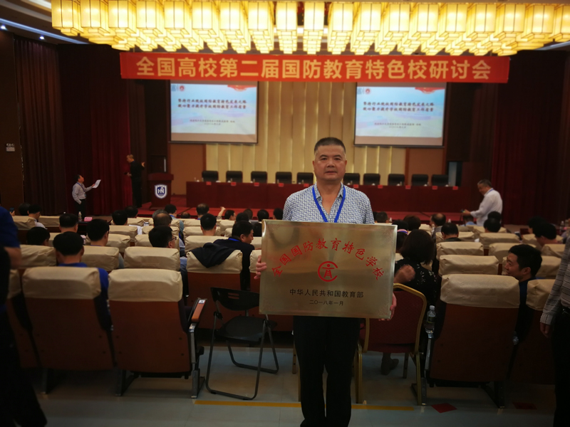 在會(huì)上,中國高等教育學(xué)會(huì)國防教育工作委員會(huì)組委會(huì)向?qū)W院頒發(fā)了“全國國防教育特色學(xué)?!迸?。