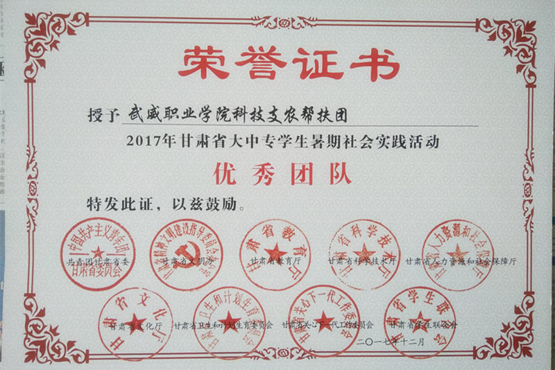 活動結束后,根據(jù)《關于開展2017年甘肅省大中專學生志愿者暑期文化科技衛(wèi)生“三下鄉(xiāng)”社會實踐活動的通知》要求,我系組織的科技支農(nóng)幫扶團集體和個人被評為甘肅省暑期“三下鄉(xiāng)”社會實踐活動先進集體和個人。