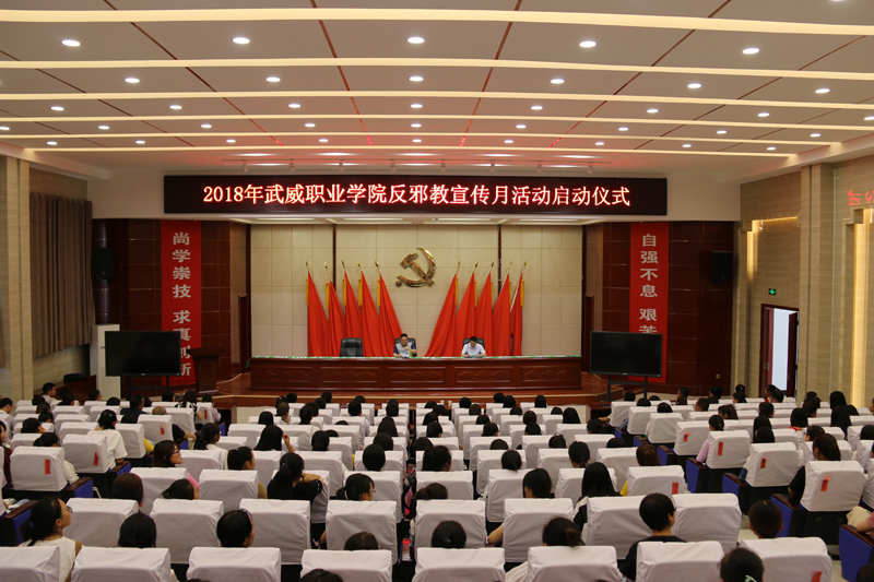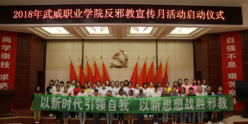 根據(jù)省教育廳印發(fā)的“2018年全省教育系統(tǒng)反邪教宣傳月宣傳周宣傳日活動方案”要求,學院集中開展以“抵制邪教、和諧校園”為主題的反邪教宣傳教育活動。6月14日,學院舉行了“武威職業(yè)學院2018年反邪教宣傳月活動啟動儀式”及師生簽名活動,師生代表共220余人參加了啟動儀式,啟動儀式由宣傳統(tǒng)戰(zhàn)部部長王繼林主持。