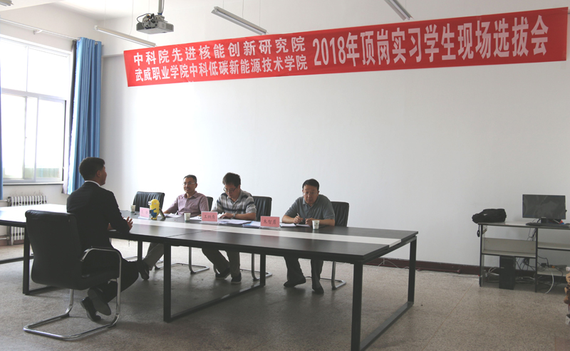2018年6月21日,中國科學(xué)院先進(jìn)核能創(chuàng)新研究院在學(xué)院舉行了2018年頂崗實(shí)習(xí)學(xué)生現(xiàn)場選撥會,由中科院先進(jìn)核能創(chuàng)新研究院綜合管理部常務(wù)副主任王納秀、熔鹽機(jī)械部熱工組組長王曉和中科武威新能源研究所所長朱智勇組成的專家組對能源類專業(yè)和機(jī)械類專業(yè)學(xué)生進(jìn)行了現(xiàn)場面試,遴選出的14名同學(xué)將于7月份前往中國科學(xué)院先進(jìn)核能創(chuàng)新研究院進(jìn)行為期一年的專業(yè)頂崗實(shí)習(xí),他們將在中科院先進(jìn)核能創(chuàng)新研究院專家教授的帶領(lǐng)下,通過一對一指導(dǎo)和崗位輪訓(xùn)等形式全面系統(tǒng)完成頂崗實(shí)習(xí),了解行業(yè)技術(shù)需求和技術(shù)最新進(jìn)展,掌握更多的專業(yè)知識和實(shí)踐技能,感受頂級科研院所深厚的科技氛圍和文化氛圍,全面提升專業(yè)水平和綜合素養(yǎng),為成功走向社會奠定良好的基礎(chǔ)。