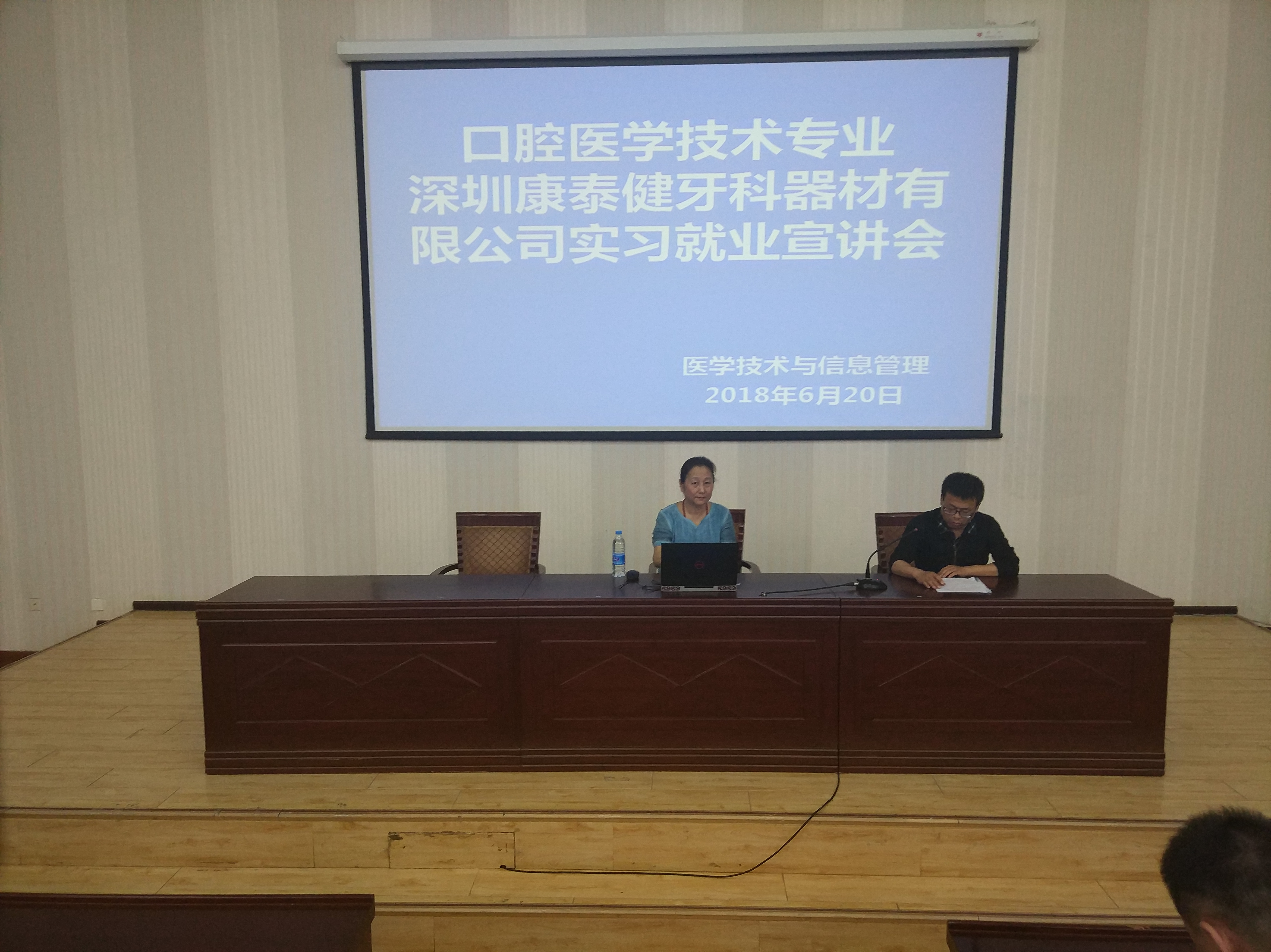 辛金紅校長對口腔醫(yī)學(xué)技術(shù)專業(yè)的發(fā)展歷史和當(dāng)前口腔醫(yī)學(xué)技術(shù)的前景做了詳細(xì)介紹;介紹了深圳市康泰健牙科器材有限公司的概況、理念、人才策略,和對新員工的具體要求和發(fā)展通道;對同學(xué)最關(guān)心的實(shí)習(xí)期間的待遇進(jìn)行了現(xiàn)場解答。