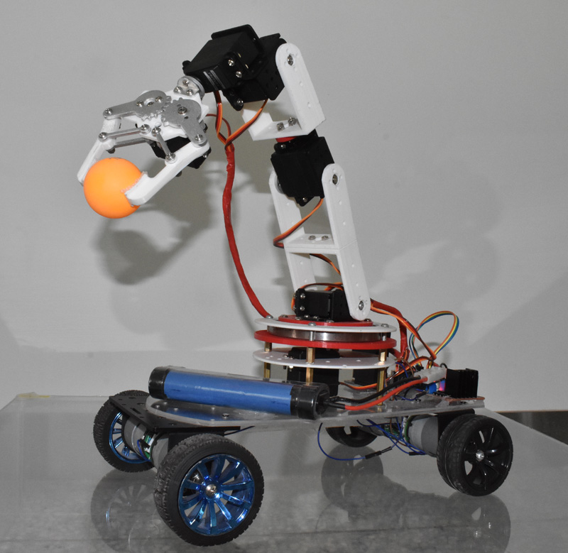 “六自由度撿球機器人”作品是基于STM32F103的六自由度機械臂,運用D-H法對機械臂進行數(shù)學(xué)建模,通過MatLab構(gòu)建運動仿真模型,通過軟件編程實現(xiàn)機械臂的單自由度、多自由度及基本的運動規(guī)劃功能的機器人?!疤柲墉h(huán)??緺t”是一款基于太陽能光熱、光伏利用的新型太陽能環(huán)??緺t。用戶可將食物切成小塊用錫紙包裹后,放置于烹飪抽屜之中,烹飪抽屜置于真空集熱管中,通過槽型拋物面聚光集熱器聚焦太陽直射光,產(chǎn)生高溫,加熱真空集熱管里面的食材。這種烤爐綠色、健康,節(jié)能、環(huán)保、熱效率高。