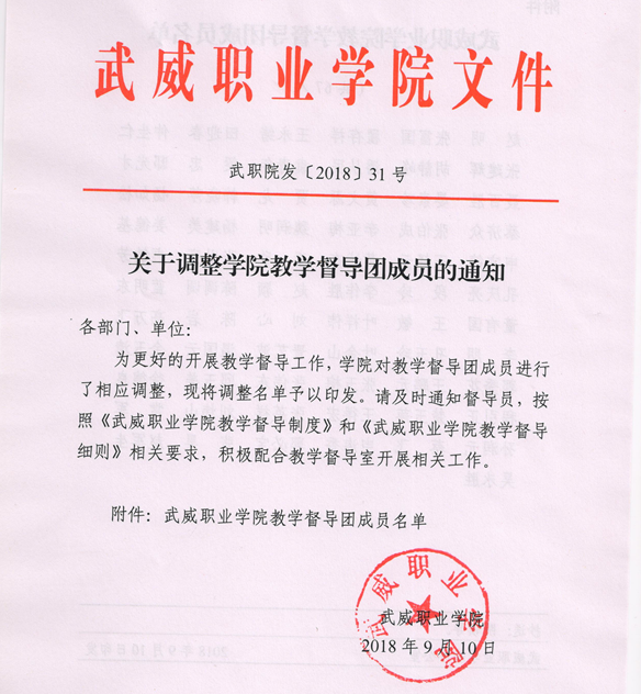 關(guān)于調(diào)整學(xué)院教學(xué)督導(dǎo)團成員的通知