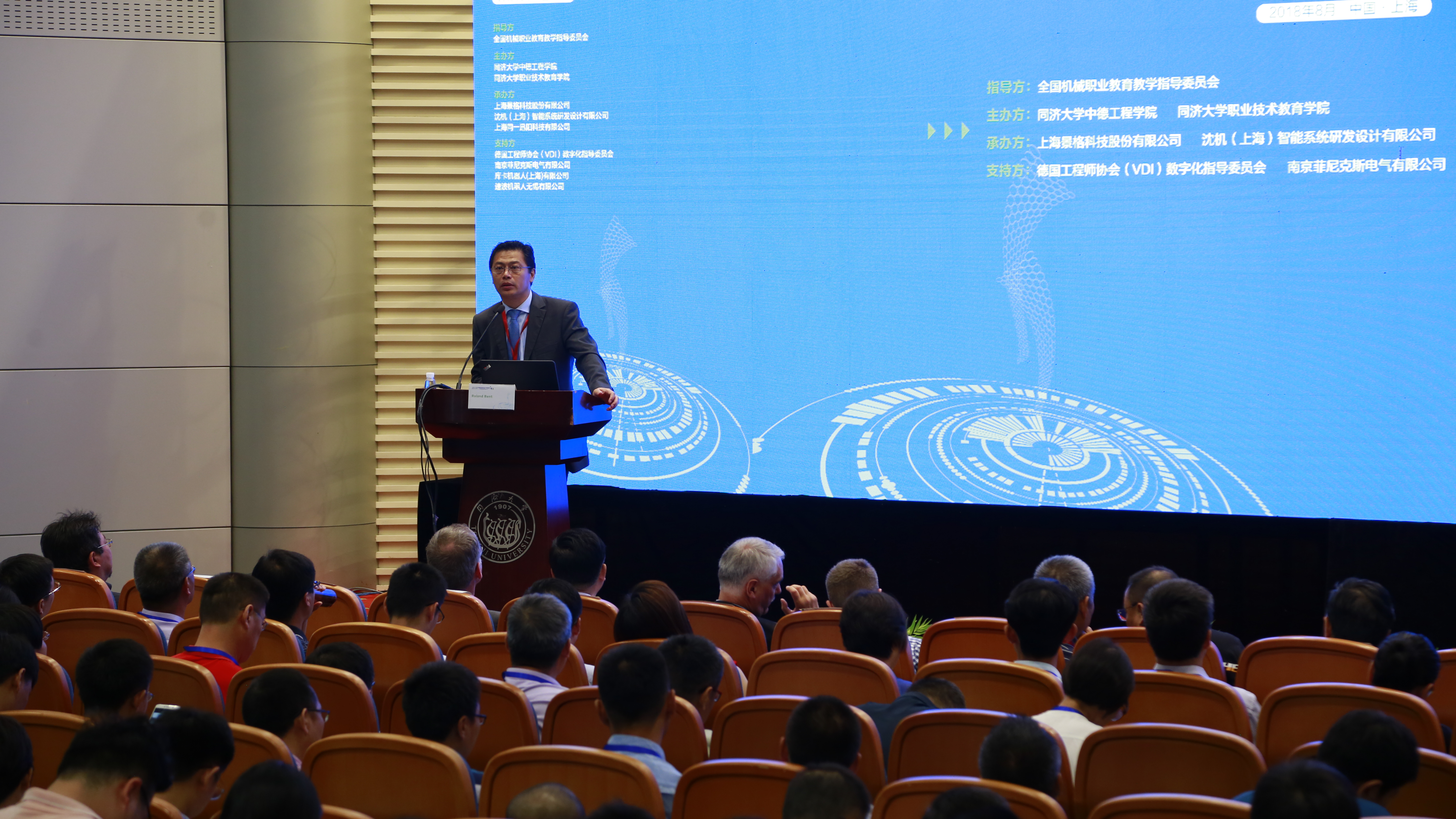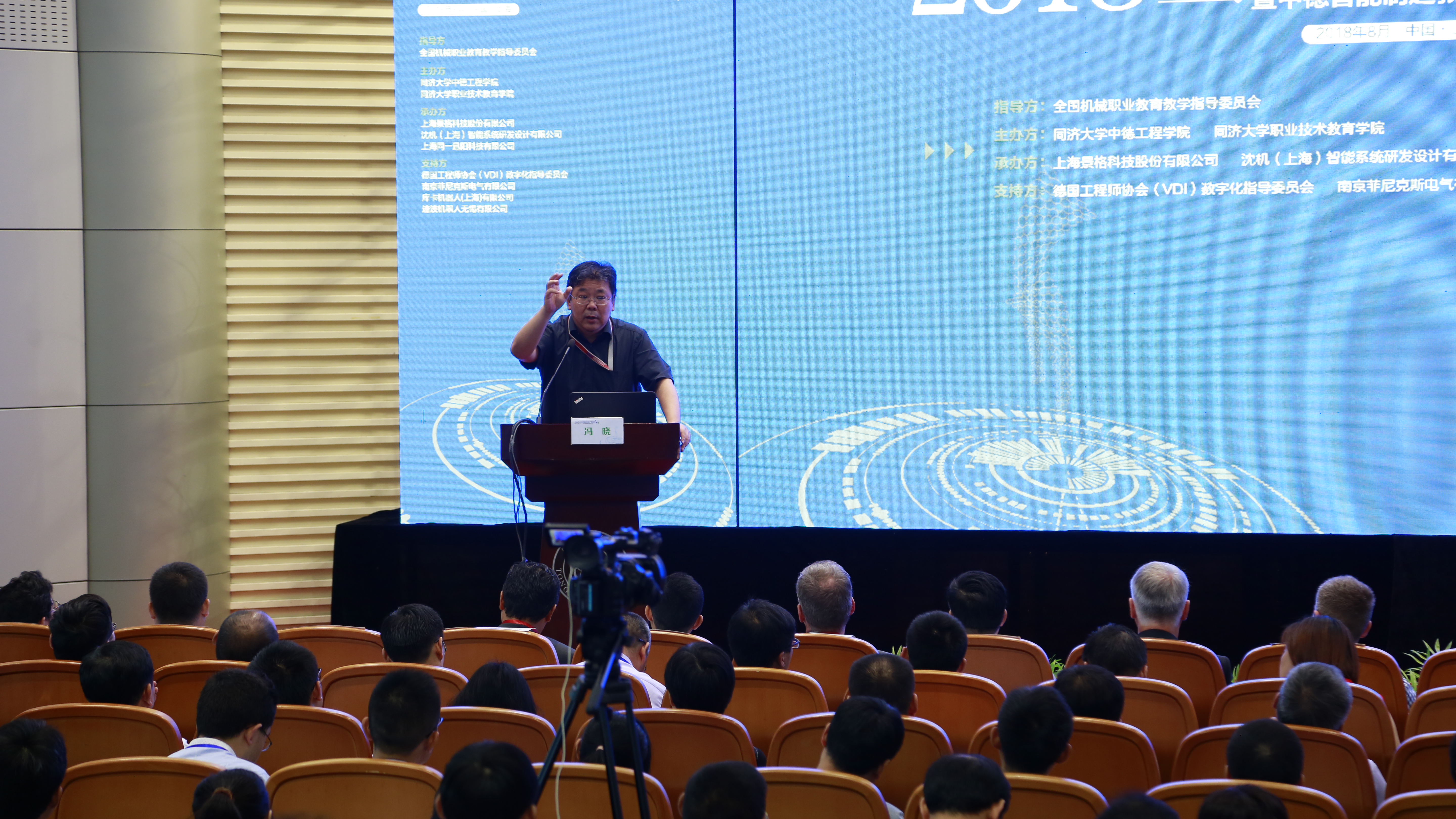 ??? 本屆論壇以全國(guó)機(jī)械職業(yè)教育教學(xué)指導(dǎo)委員會(huì)為指導(dǎo)單位,同濟(jì)大學(xué)中德工程學(xué)院和同濟(jì)大學(xué)職業(yè)技術(shù)教育學(xué)院聯(lián)合中德智能制造教育聯(lián)盟主辦,由上海景格科技股份有限公司、沈機(jī)(上海)智能系統(tǒng)研發(fā)設(shè)計(jì)有限公司、上海同一迅陽(yáng)科技有限公司承辦。以及德國(guó)工程師協(xié)會(huì)(VDI)數(shù)字化指導(dǎo)委員會(huì)、南京菲尼克斯電氣有限公司、庫(kù)卡機(jī)器人(上海)有限公司、速波機(jī)器人無(wú)錫有限公司等企業(yè)為本次論壇提供了產(chǎn)教融合實(shí)踐之道的各項(xiàng)支持。本屆論壇得到國(guó)內(nèi)外200多所在智能制造相關(guān)專業(yè)領(lǐng)域優(yōu)秀的中高職、應(yīng)用型本科院校的高度關(guān)注和積極響應(yīng),近300位校領(lǐng)導(dǎo)、職教專家、知名企業(yè)代表等齊聚一堂,共謀深化智能制造產(chǎn)教融合的創(chuàng)新之道。