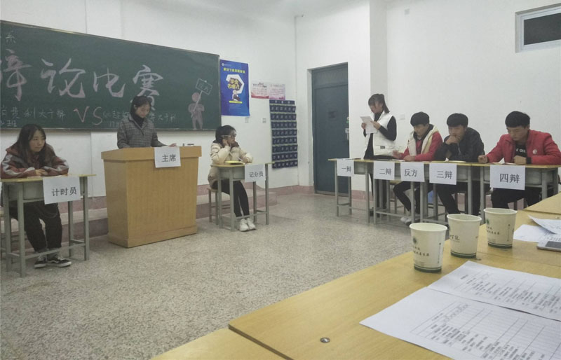 通過辯論賽為我系青年學(xué)生提供了一個(gè)鍛煉自我的平臺(tái),促進(jìn)了學(xué)生間、班級(jí)間、師生間交流,提高了大學(xué)生的思辨能力和團(tuán)隊(duì)合作意識(shí),展現(xiàn)了我系青年學(xué)生昂揚(yáng)向上的青春風(fēng)采和精神面貌。