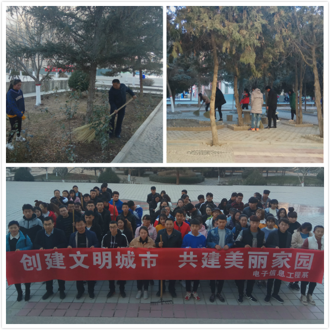 11月22日下午,電子信息工程系黨總支組織黨員教師、入黨積極分子和2018級學(xué)生入黨申請人開展了環(huán)境衛(wèi)生治理工作,清理校園衛(wèi)生死角,用實際行動助推武威市文明城市創(chuàng)建和全省文明校園創(chuàng)建。