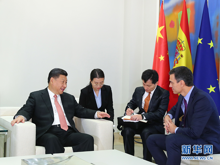 習近平強調,雙方要加強高層交往對兩國關系發(fā)展的政治引領,密切政府部門和立法機構交往合作,深化政治互信,繼續(xù)在涉及彼此核心利益和重大關切問題上相互理解、相互支持,推動兩國關系行穩(wěn)致遠。中西開展“一帶一路”合作具有歷史、地理等多重優(yōu)勢,要加強“一帶一路”倡議同西班牙亞洲戰(zhàn)略、地中海走廊建設等對接,促進經貿往來,拓展港口、航運、航空、新能源汽車、金融等領域合作,優(yōu)化科技、創(chuàng)新合作。雙方要深化人文交流,加強文化、地方、旅游、新聞、醫(yī)療、文化遺產保護、體育等領域交流合作。中國愿同西班牙繼續(xù)就完善全球治理、應對氣候變化等國際和地區(qū)熱點問題保持溝通和協(xié)調。