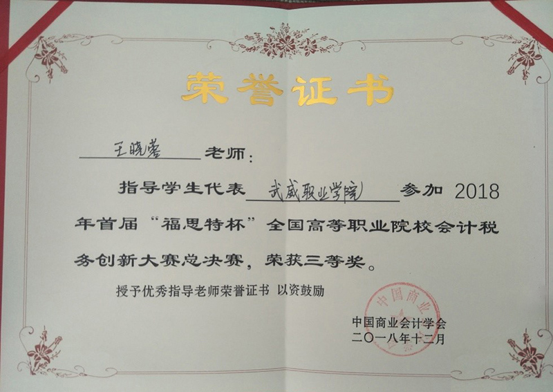 本次比賽得到學院領導、系領導的高度重視與大力支持。經濟管理系專門成立了輔導小組,嚴格按照國賽要求進行實戰(zhàn)訓練。近年來,經濟管理系參加各級各類會計技能競賽,適時修訂會計人才培養(yǎng)方案,提升學生動手實踐能力,培養(yǎng)學生的職業(yè)核心和專業(yè)崗位能力。做到技能競賽與教學改革、人才培養(yǎng)相輔相成、相得益彰,使學生團隊合作能力、創(chuàng)新思維能力、職業(yè)能力不斷加強,實現了“以賽促教、以賽促學、以賽促改”的預期效果。經濟管理系將以此為契機,不斷提高人才培養(yǎng)質量,為學院優(yōu)質院校建設增磚添瓦。