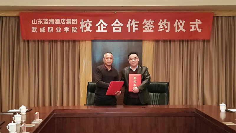洽談結(jié)束后,潘從民代表武威職業(yè)學(xué)院與山東藍(lán)海酒店集團(tuán)完成了校企合作簽約。
