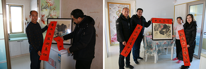 在寫(xiě)完300余幅春聯(lián)后,幫扶干部將春聯(lián)、繪畫(huà)作品送到幫扶對(duì)象家中,將新春的祝福和慰問(wèn)一一送達(dá),與他們交心談心拉家常,傳達(dá)中央的各項(xiàng)會(huì)議精神及惠民政策,確保貧困戶過(guò)一個(gè)溫暖祥和的春節(jié)。