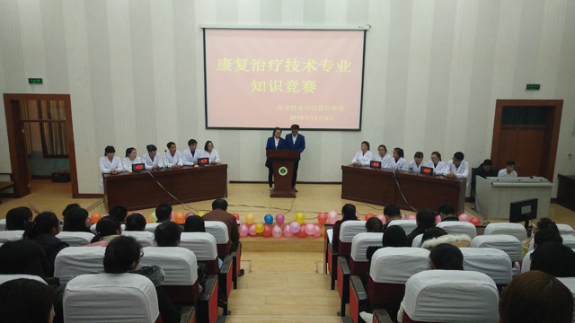 為加強學(xué)風(fēng)建設(shè),鞏固特色專業(yè)建設(shè)成果,增強同學(xué)們對專業(yè)知識的了解,培養(yǎng)同學(xué)們的思維能力、創(chuàng)新能力,提高學(xué)生的競爭力,12月5日晚,醫(yī)學(xué)技術(shù)與信息管理系在尚德樓正德廳舉行康復(fù)治療技術(shù)專業(yè)知識競賽。學(xué)院基建處處長周興全,系主任楊如松,學(xué)生工作負責(zé)人魏曙光,院團委馬琪老師,系政治輔導(dǎo)員,康復(fù)治療技術(shù)專業(yè)教研室主任、任課教師及全體班主任、學(xué)生代表參加本次活動。