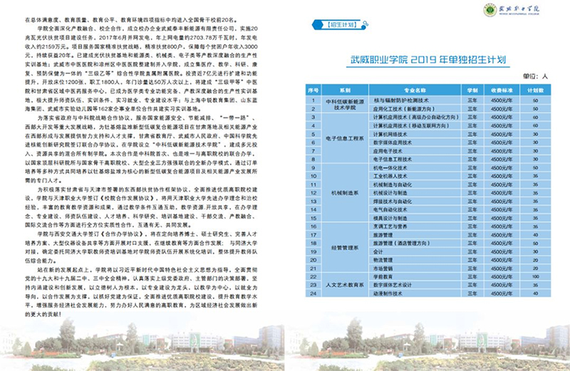 武威職業(yè)學院2019年單獨招生簡章(圖文版)