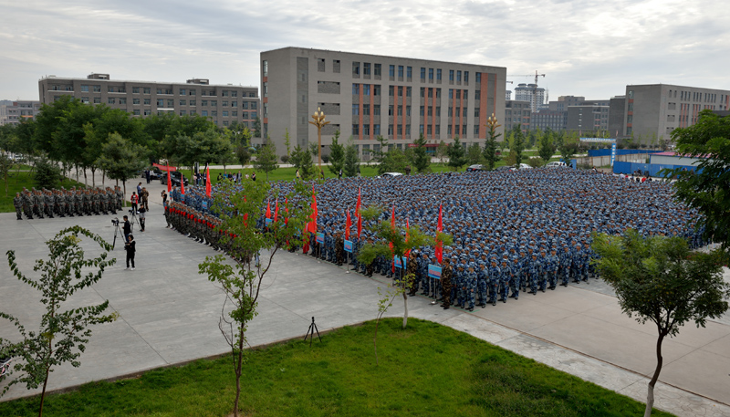 大會(huì)現(xiàn)場(chǎng),田迎春向承訓(xùn)單位授予軍訓(xùn)團(tuán)旗。大會(huì)在雄壯的《中國(guó)人民解放軍軍歌》聲中拉開(kāi)了軍訓(xùn)序幕。