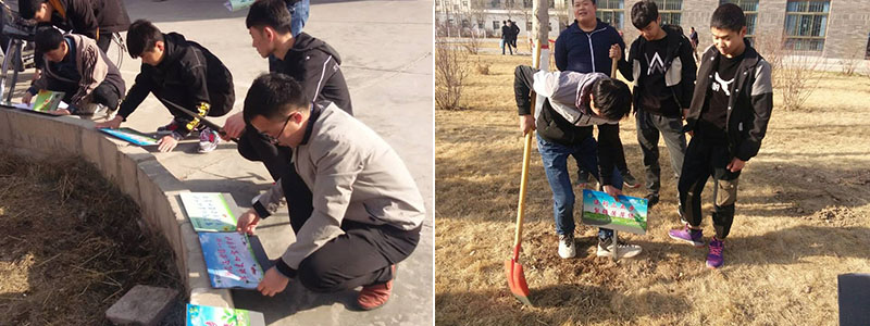 機械制造系開展校園草坪文明標語樹立活動