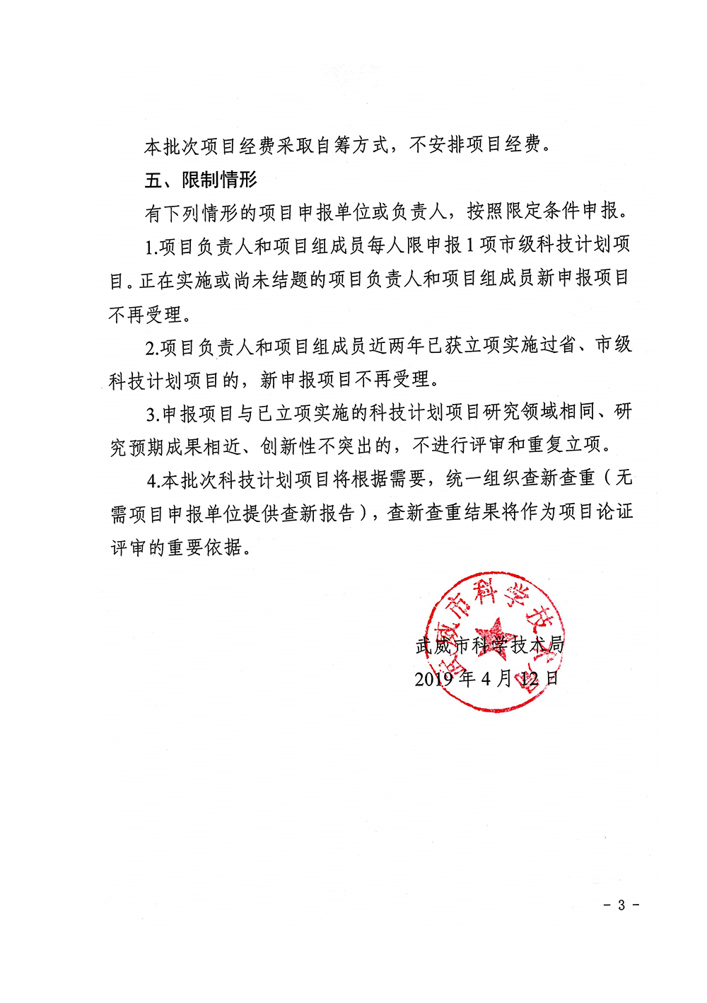 轉(zhuǎn)發(fā)武威市科學(xué)技術(shù)局關(guān)于組織申報(bào)2019年度第一批市級(jí)科技計(jì)劃項(xiàng)目的通知