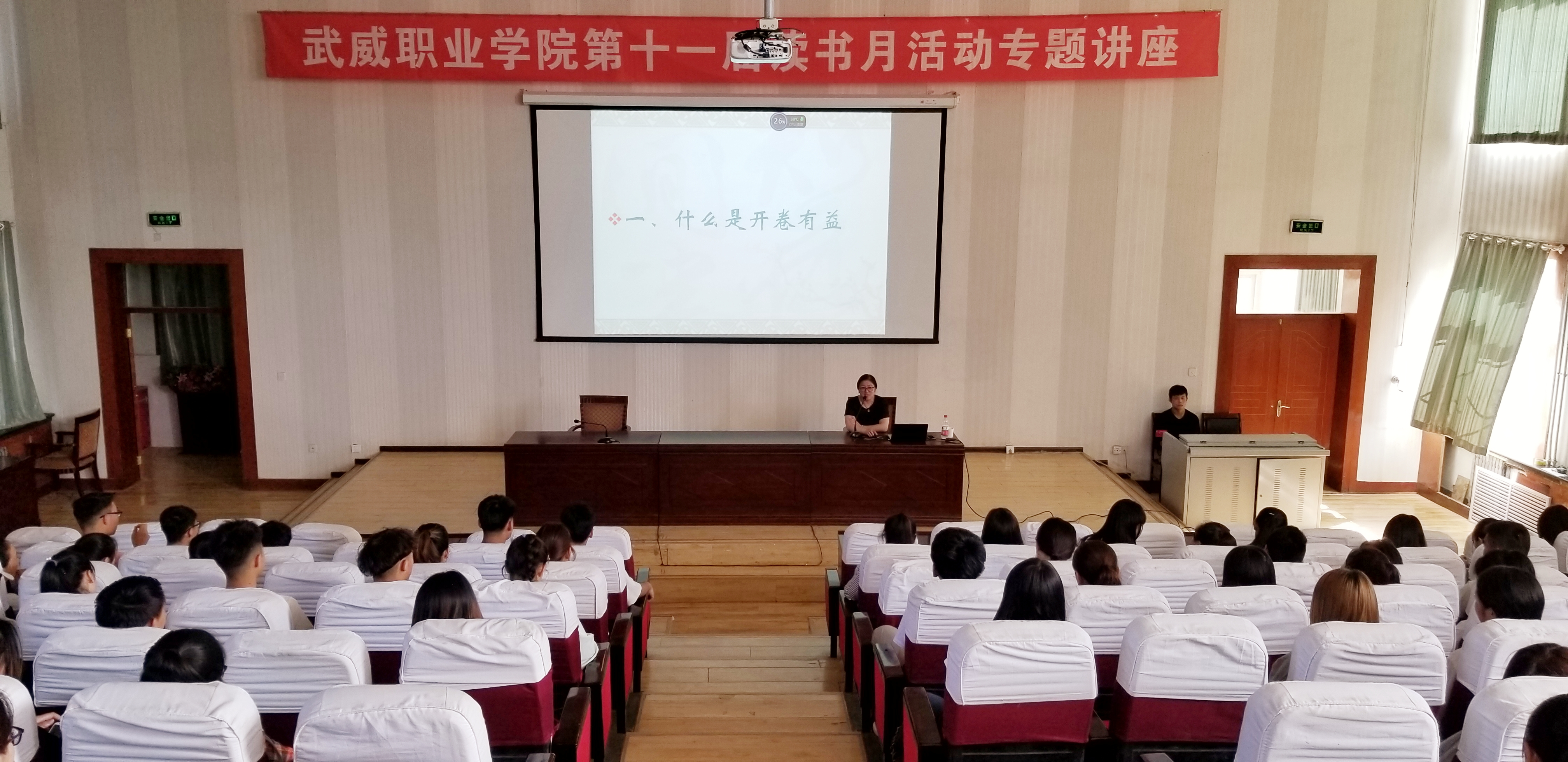 武威職業(yè)學(xué)院第十一屆讀書月活動專題講座6月12日在正德廳舉行。學(xué)院中文專業(yè)副教授、電子信息工程系主任李亞梅應(yīng)邀進(jìn)行了《開卷有益》讀書月談讀書的專題講座,近300名師生參加了此次講座。