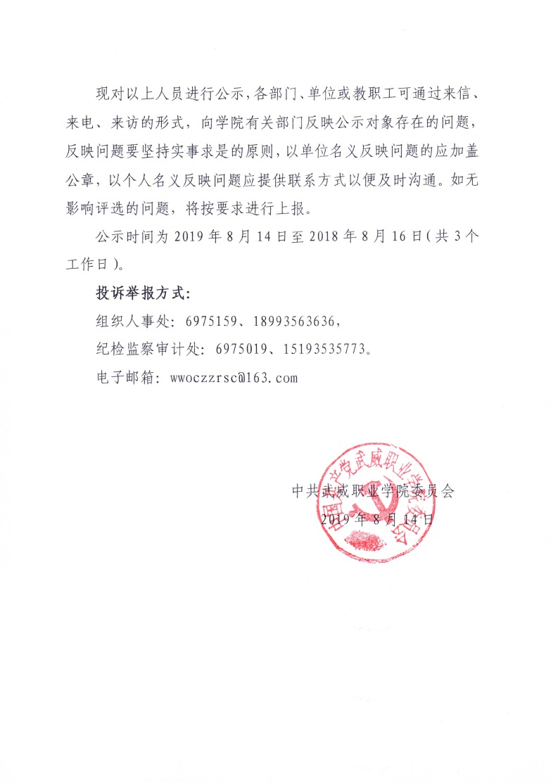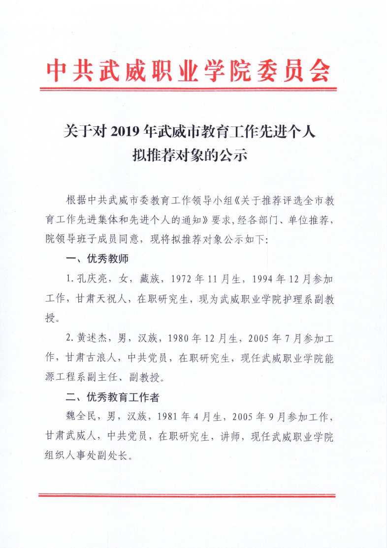 關于對2019年武威市教育工作先進個人擬推薦對象的公示