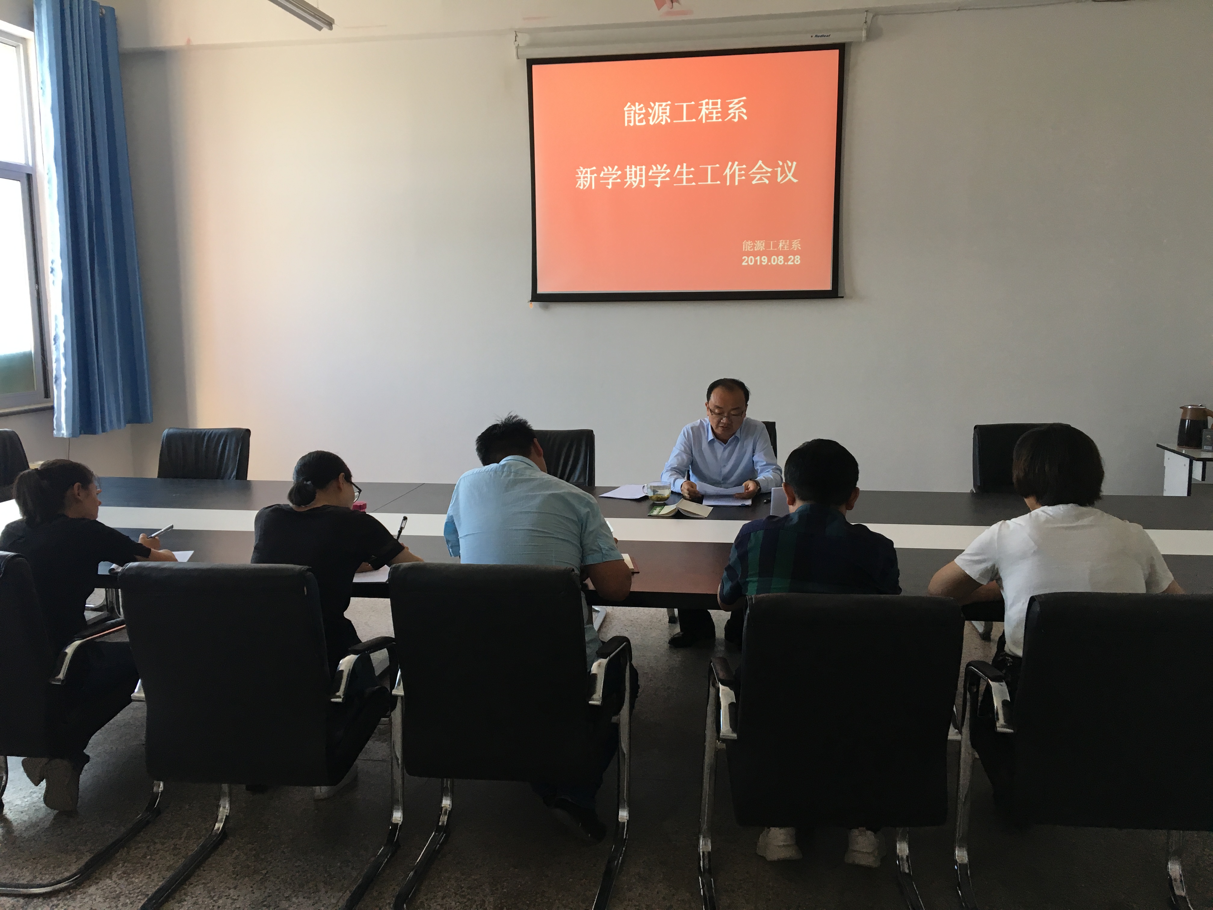 8月28日,能源工程系黨總支書記黃文源主持召開新學期學生工作會議,安排部署本學期學生工作和新生報到工作,全體輔導(dǎo)員、班主任參加了會議。