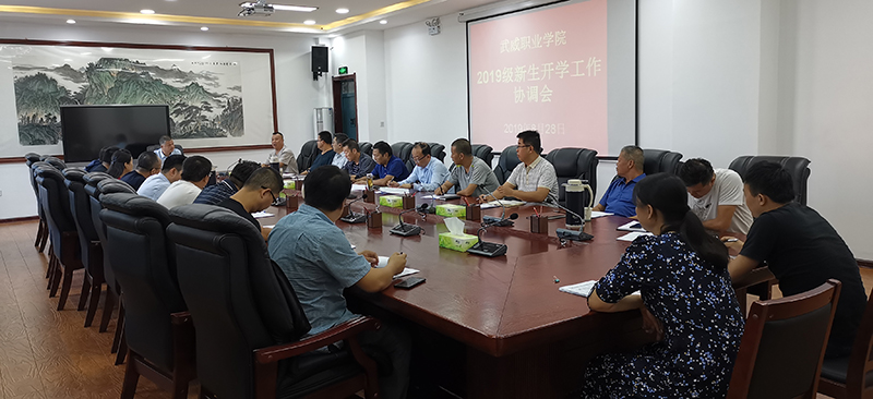 會上,招就處處長蔡柱山匯報了2019年大中專及高職擴招工作情況;學工處安排了新生入學報到相關籌備工作和新生軍訓工作,對報到流程、工作職責、注意事項等進行了說明;保衛(wèi)處副處長王政對今年迎新工作的學生宿舍、安全保衛(wèi)工作進行了安排部署;院團委負責人高鵬堂安排了“慶國慶 迎新生”文藝晚會事宜。