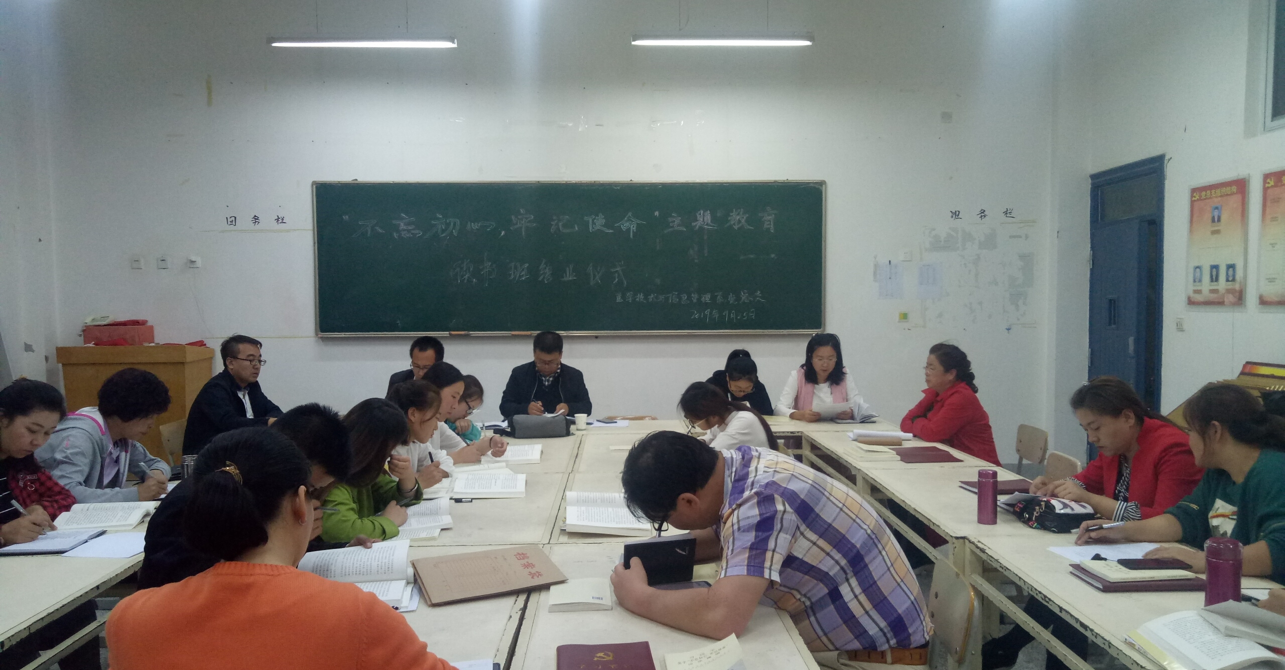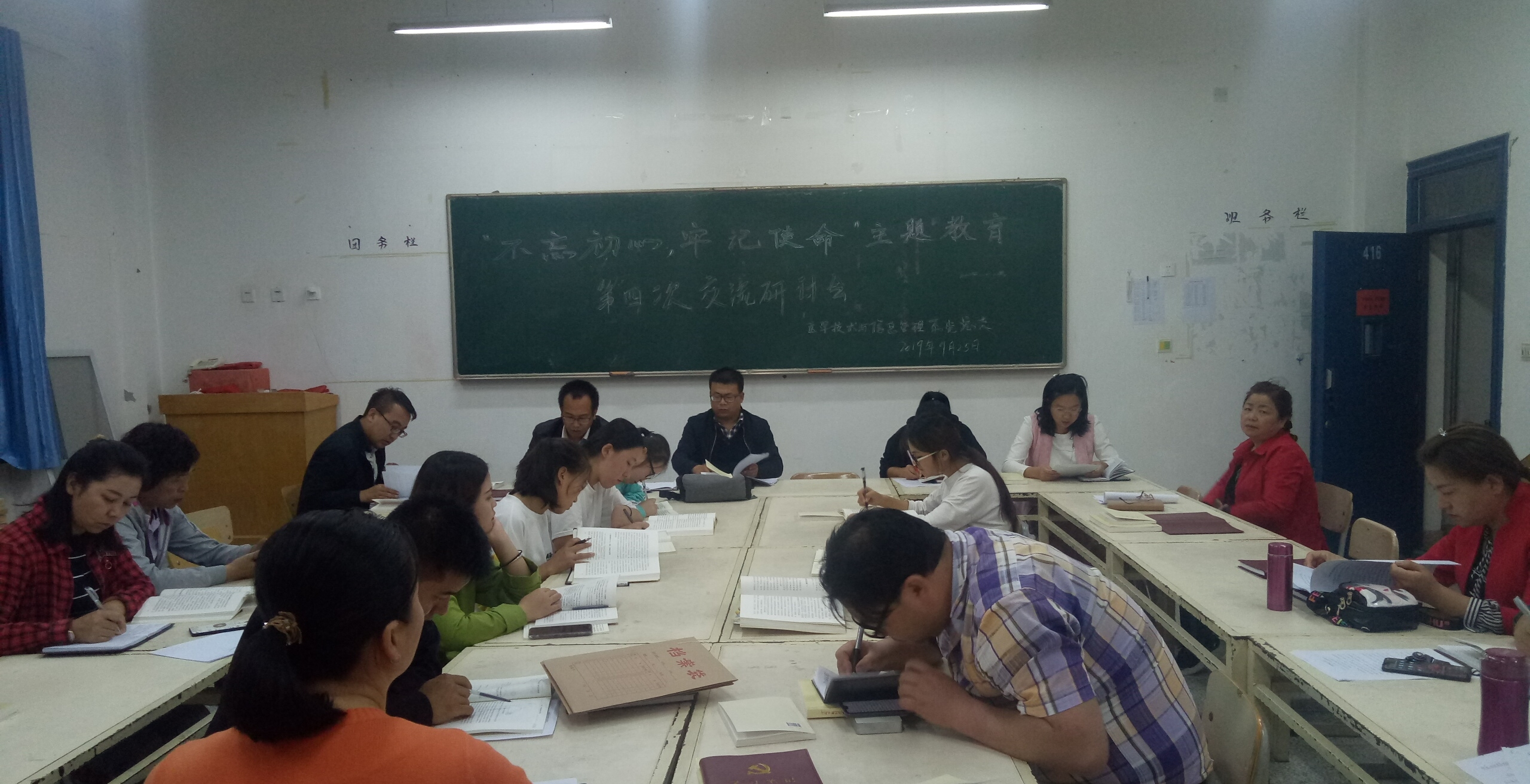 9月25日晚,醫(yī)學(xué)技術(shù)學(xué)院黨總支在明遠(yuǎn)樓416會(huì)議室召開“不忘初心、牢記使命”主題教育讀書班第四次交流研討會(huì)暨讀書班結(jié)業(yè)儀式。系全體黨員、非黨員教師及入黨積極分子參加了會(huì)議。系副主任蔡濟(jì)眾主持會(huì)議并做總結(jié)講話。