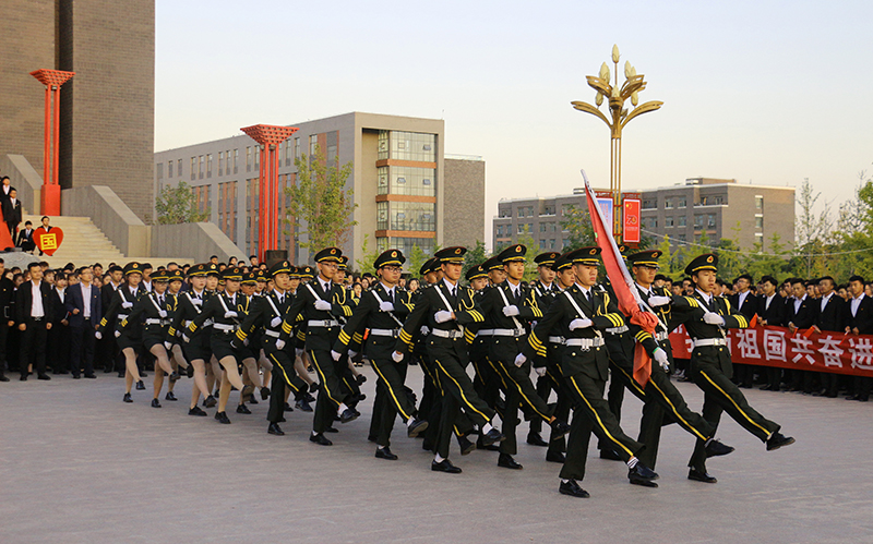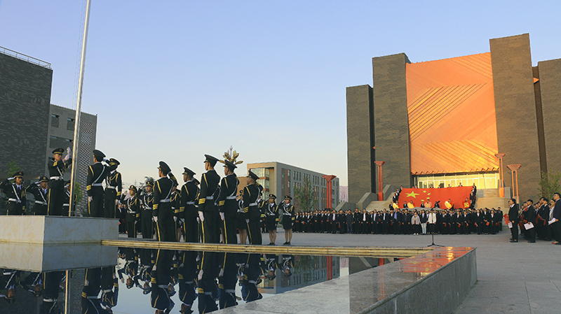 首先,舉行升國(guó)旗儀式。英姿颯爽的國(guó)旗護(hù)衛(wèi)隊(duì)踏著矯健的步伐護(hù)送國(guó)旗抵達(dá)升旗臺(tái),鮮艷的五星紅旗在雄壯的國(guó)歌聲中冉冉升起,全場(chǎng)師生齊唱中華人民共和國(guó)國(guó)歌,飄揚(yáng)的國(guó)旗、嘹亮的國(guó)歌,激蕩起每個(gè)人強(qiáng)烈的愛國(guó)熱情。升旗儀式結(jié)束后,全體師生揮動(dòng)手中的五星紅旗齊唱《歌唱祖國(guó)》,用歌聲共同祝福偉大的祖國(guó)繁榮富強(qiáng)。院團(tuán)委馬琪老師帶領(lǐng)全體團(tuán)員面向鮮紅的團(tuán)旗重溫入團(tuán)誓詞,激發(fā)共青團(tuán)員的光榮感和使命感。