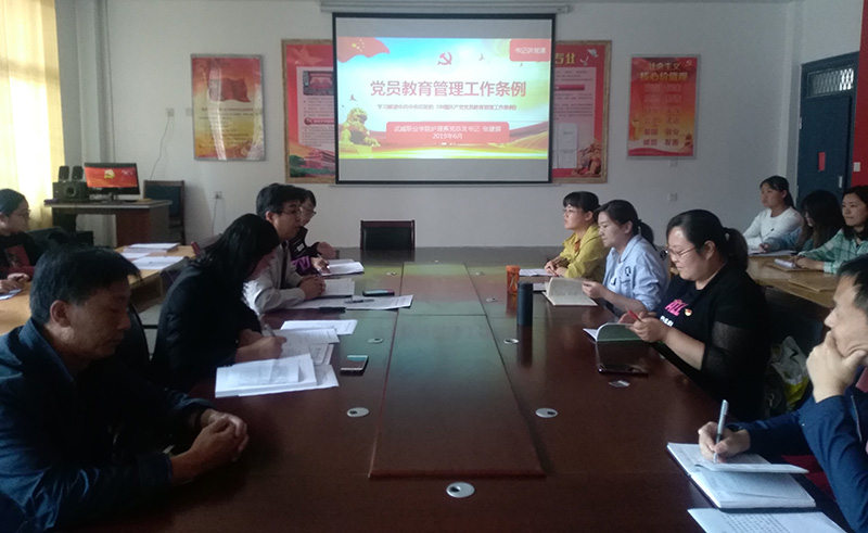 護(hù)理系黨總支書記張建輝以《黨員教育管理工作條例》為題,從條例制定的背景及意義、如何貫徹落實(shí)等方面帶領(lǐng)大家逐條逐句學(xué)習(xí)解讀。