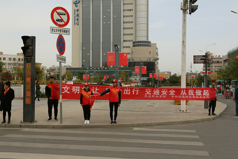 為進(jìn)一步增強(qiáng)廣大市民的文明交通意識(shí),營造文明、暢通、安全、有序的道路交通環(huán)境,助力武威市創(chuàng)建全國文明城市,10月19日至20日,中科低碳新能源技術(shù)院志愿者到武威市步行街西口大十字路口和北關(guān)十字路口開展“文明交通 安全出行”志愿者服務(wù)活動(dòng)。