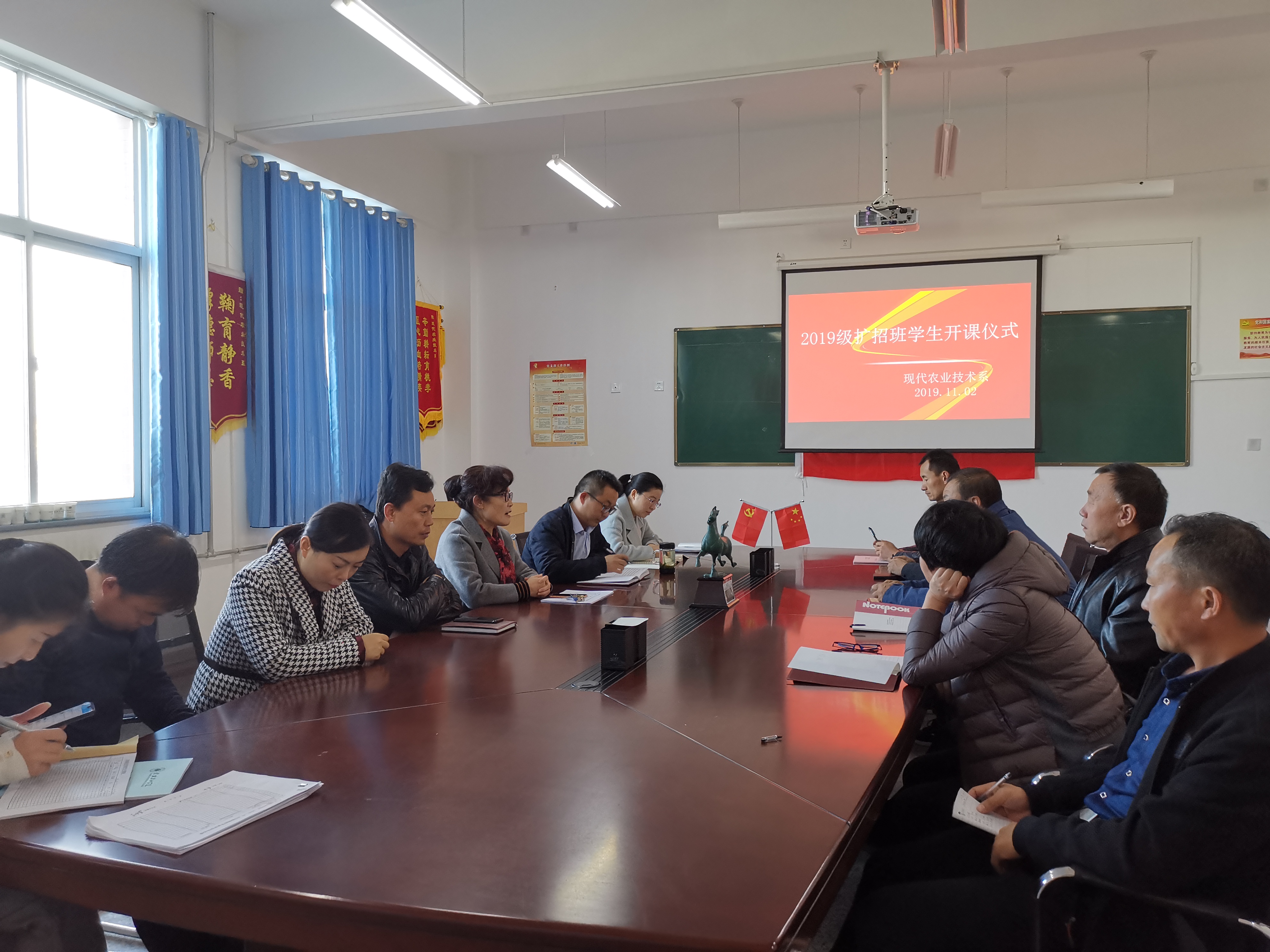 11月2日上午,現(xiàn)代農(nóng)業(yè)技術(shù)系在行樹樓教學區(qū)309會議室組織舉行了2019級設(shè)施農(nóng)業(yè)與裝備專業(yè)擴招班新生開課儀式。黨總支書記晏素珍、班主任、任課教師、部分行政管理人員以及擴招班新生參加了儀式。
