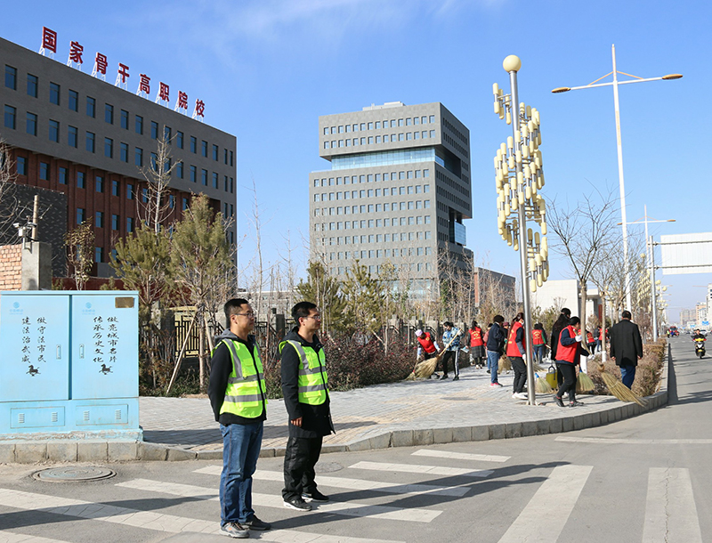 為認(rèn)真落實(shí)全市創(chuàng)城工作推進(jìn)會(huì)會(huì)議精神,提升全國文明城市創(chuàng)建工作水平,建設(shè)人民滿意的幸福城市,在市委市政府及創(chuàng)城辦的統(tǒng)一安排下,11月15日下午,在學(xué)院副院長王守云、張開禮的帶領(lǐng)下,我院100多名黨員干部組成的志愿者服務(wù)隊(duì),集中在我院的劃定區(qū)域,進(jìn)行常態(tài)化的文明交通勸導(dǎo)和環(huán)境衛(wèi)生整治活動(dòng)。
