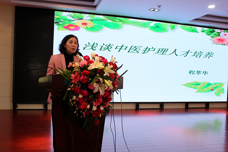 程萃華主講的題目是:《淺談中醫(yī)護(hù)理人才培養(yǎng)》。她說(shuō):中醫(yī)護(hù)理人才培養(yǎng)重點(diǎn)要做好以下幾個(gè)方面的工作:一要加強(qiáng)新入職護(hù)理人員的崗前培訓(xùn),注重中醫(yī) “仁、和、精、誠(chéng)”核心價(jià)值觀的人文素養(yǎng)的培育;二要加強(qiáng)中醫(yī)基本理論和中醫(yī)操作技能培訓(xùn),用中醫(yī)理論指導(dǎo)中醫(yī)臨床護(hù)理工作;三要制定中醫(yī)護(hù)理人才引進(jìn)計(jì)劃,著力引進(jìn)高層次中醫(yī)護(hù)理人才,加大中醫(yī)護(hù)理人才的招聘比例;四要爭(zhēng)取醫(yī)院領(lǐng)導(dǎo)支持,落實(shí)中醫(yī)護(hù)理在人才引進(jìn)和培養(yǎng)、教學(xué)科研、中醫(yī)護(hù)理技術(shù)推廣、中醫(yī)護(hù)理信息管理、重點(diǎn)??平ㄔO(shè)等方面的經(jīng)費(fèi)投入,保障醫(yī)院的中醫(yī)護(hù)理工作向前發(fā)展。