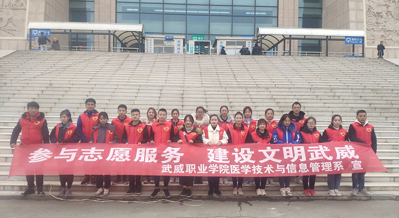 為強化大學生思想道德素質(zhì)和志愿服務精神,增強大學生奉獻服務精神,創(chuàng)建和諧、文明、美麗校園,11月23日,武威職業(yè)學院醫(yī)學技術學院團總支書記石瑞山老師帶領系分團委、學生會骨干及18、19級入黨積極分子在武威市火車站、汽車站開展了以“參與志愿服務,建設文明武威”為主題的志愿者服務活動。