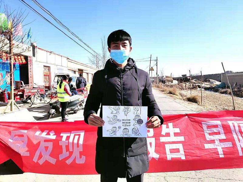 人文藝術(shù)教育系團(tuán)委副書記孫國(guó)祥,家在甘肅省定西市通渭縣平襄鎮(zhèn)中林村,在近期的防控疫情狙擊戰(zhàn)中,自愿參與到當(dāng)?shù)匾咔榉揽毓ぷ髦?,協(xié)助工作人員檢查過(guò)往車輛,并將他之前儲(chǔ)存的未拆封醫(yī)用口罩捐贈(zèng)給一起的工作人員。他表示,縱有疫情可怕似虎,亦有青年為國(guó)奉獻(xiàn)。打贏這場(chǎng)大仗、硬仗,每一個(gè)中國(guó)人都應(yīng)有防控疫情的責(zé)任,要有主動(dòng)行動(dòng)的自覺(jué)。武漢加油,中國(guó)加油!
