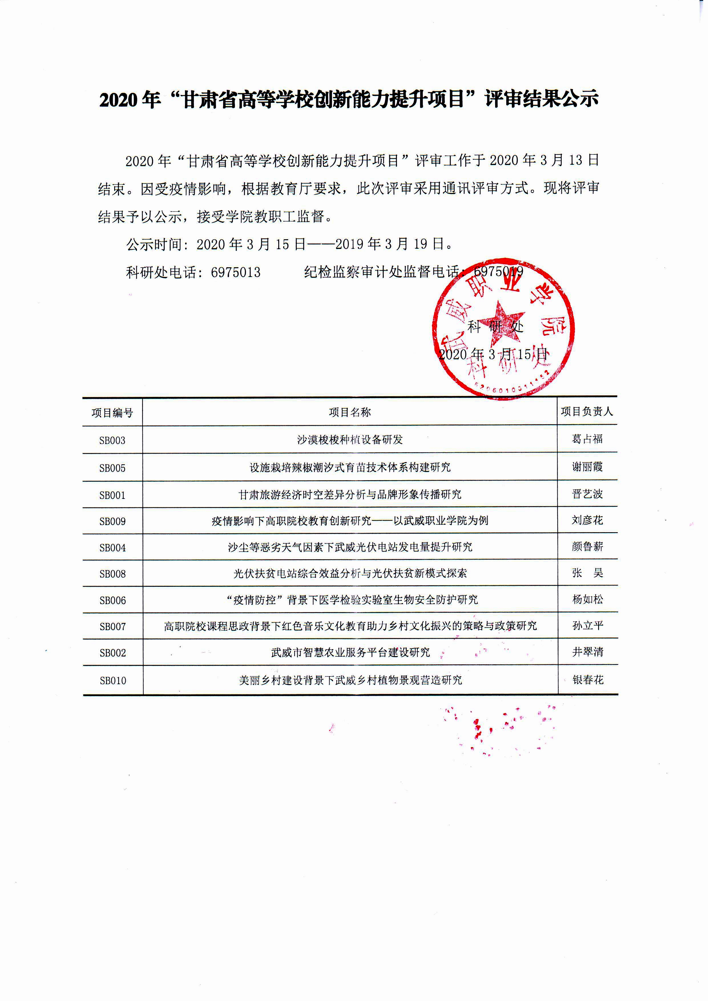 2020年高校創(chuàng)新能力提升項目立項評審公示