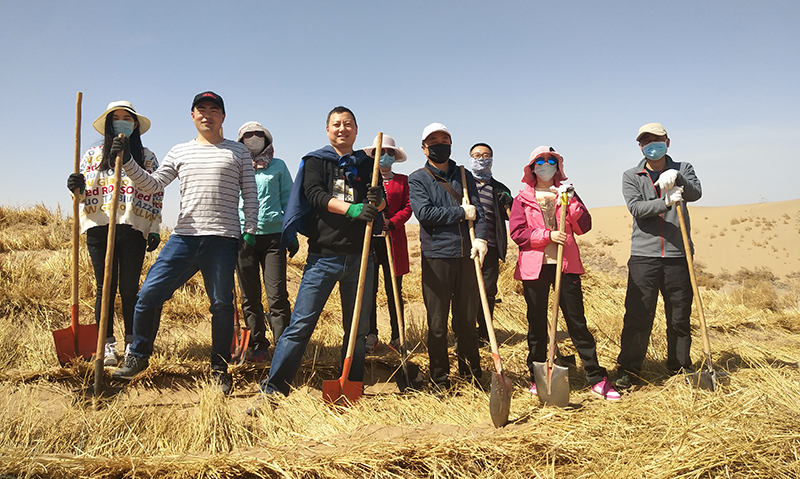 為認(rèn)真踐行綠水青山就是金山銀山理念,大力弘揚(yáng)八步沙“六老漢”當(dāng)代愚公精神,2020年4月8日,教學(xué)管理第一黨支部聯(lián)合現(xiàn)代農(nóng)業(yè)技術(shù)系、中科院武威所赴長城鄉(xiāng)開展“壓沙造林”主題黨日活動(dòng),全體黨員參加活動(dòng),以實(shí)際行動(dòng)領(lǐng)悟和彰顯黨員教師的初心使命和責(zé)任擔(dān)當(dāng)。