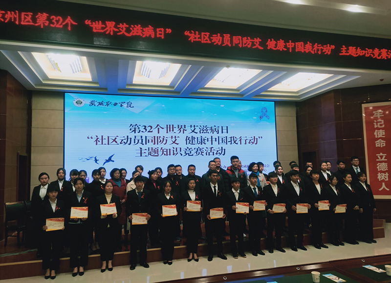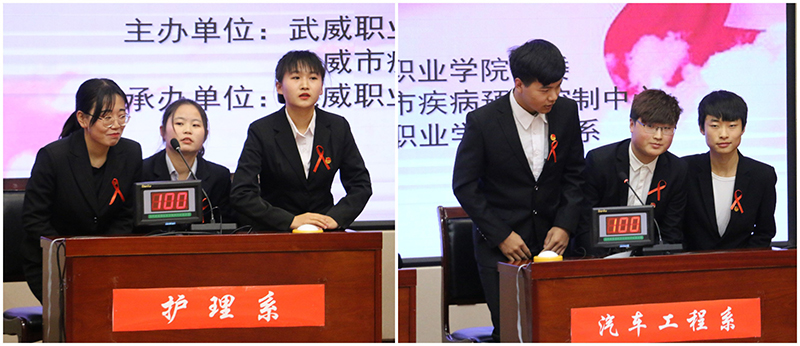 為持續(xù)深入推進大學生艾滋病預防教育工作,迎接第32個世界艾滋病日的到來, 12月1日晚,學院開展了艾滋病知識競賽活動,學院副院長王永緒、王守云,市疾控中心領(lǐng)導參加活動。此次活動由武威職業(yè)學院與武威市疾控中心聯(lián)合主辦,護理系承辦,活動的主題為“社區(qū)動員同防艾 .健康中國我行動”。學院團委及部分系老師,各系學生代表觀看了比賽。