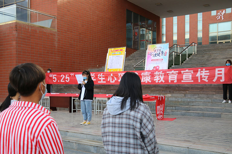 儀式上,學生工作處負責人對本次系列活動作了具體安排,希望各班級能積極配合,按照學院下發(fā)的心理健康教育方案,高質(zhì)量完成各項工作,共同做好疫情期間同學們心理防護;學生代表宣讀了5.25心理健康日活動倡議書,倡導大家要關愛自己,了解自我,關注自己的心理健康和心靈成長,提高自身心理素質(zhì)和保健能力。