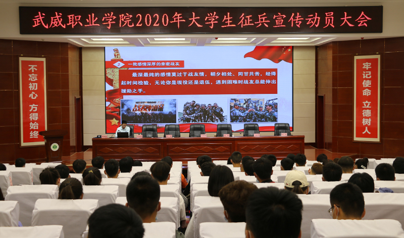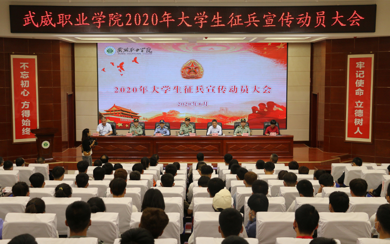 6月10日上午,學(xué)院2020年大學(xué)生征兵宣傳動員大會在菁英廳舉行。武威軍分區(qū)司令員張國輝、武威軍分區(qū)動員處處長劉忠、涼州區(qū)人武部部長闞延貴、涼州區(qū)人武部政委丁俊強,學(xué)院黨委書記、院長趙明,副院長何毅出席會議。各院系負責(zé)人、輔導(dǎo)員和學(xué)生代表共200人參加了會議。會議由副院長王守云主持。