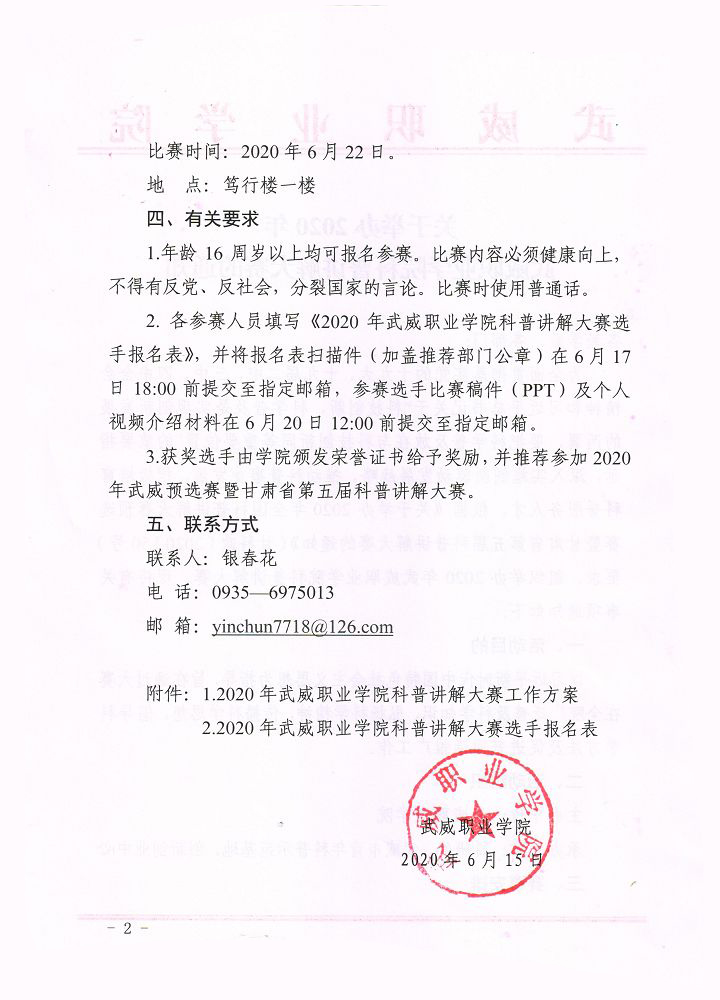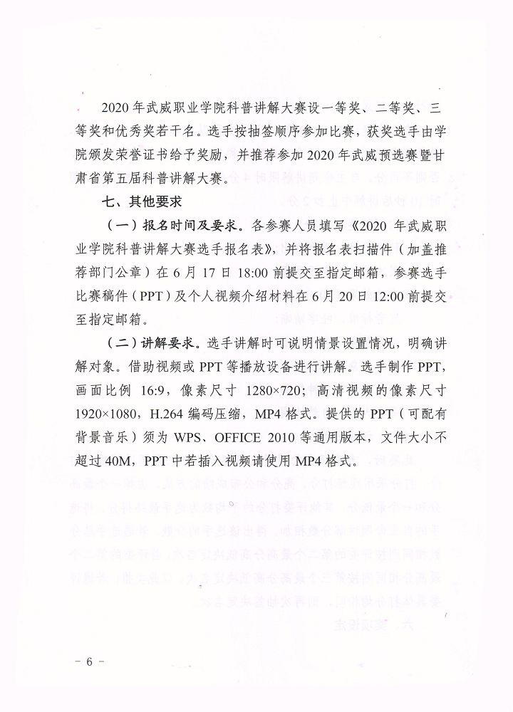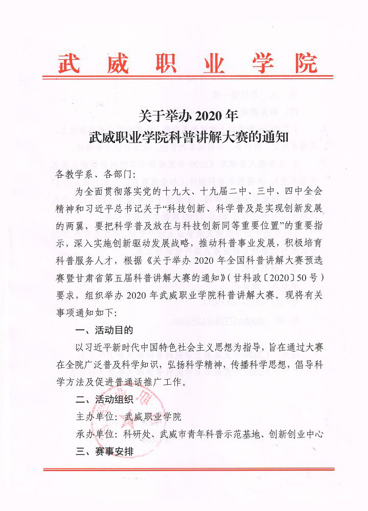 關(guān)于舉辦2020年武威職業(yè)學(xué)院科普講解大賽的通知