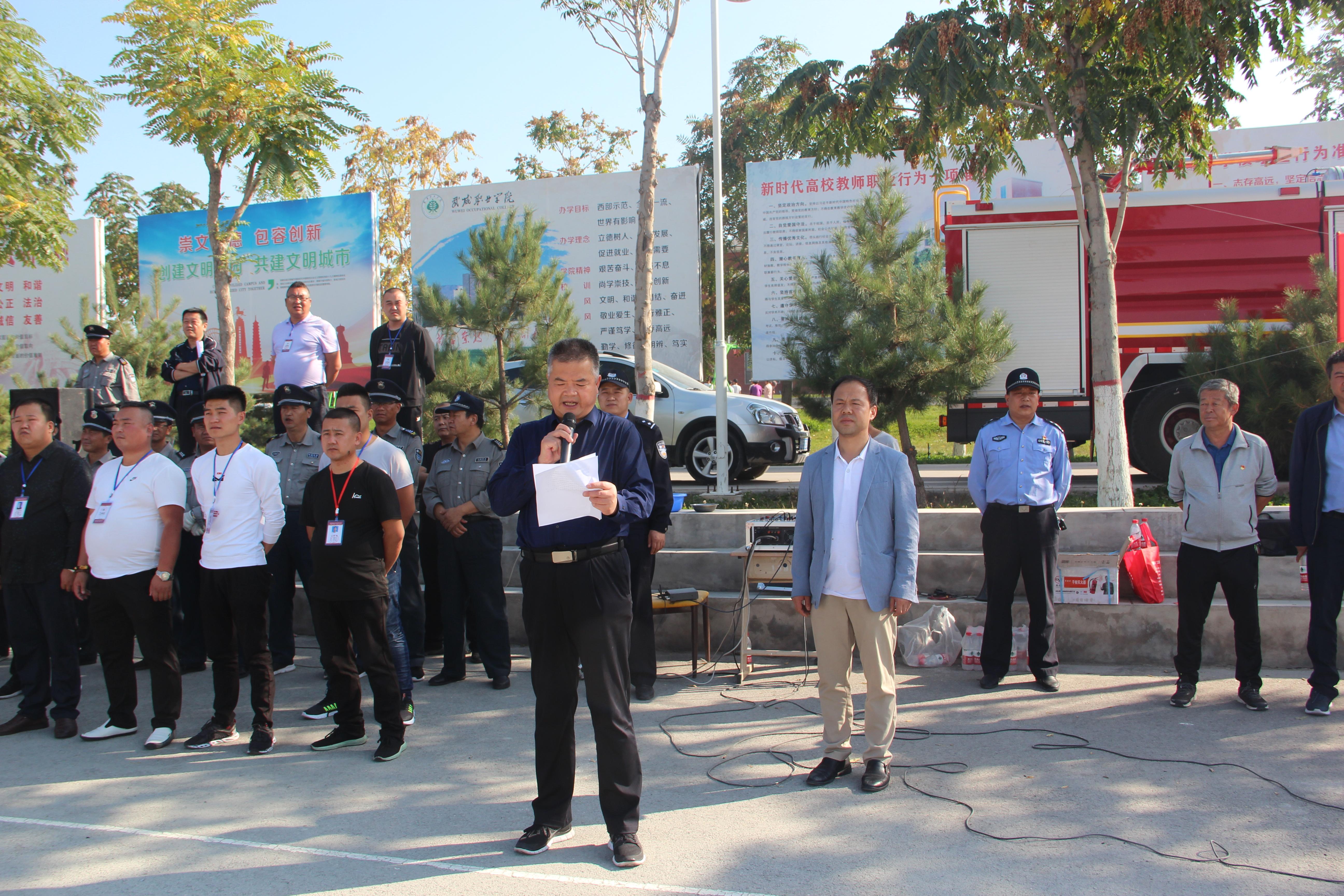 9月25日下午,學(xué)院聯(lián)合武威市消防支隊舉行了2019年秋季消防應(yīng)急疏散和滅火演練活動。學(xué)院副院長王守云擔(dān)任總指揮,保衛(wèi)處、學(xué)生工作處、各系負(fù)責(zé)同志及轄區(qū)派出所民警、街道社區(qū)工作人員現(xiàn)場觀摩了演練,約4000多名2019級新生及學(xué)生管理工作人員、食堂工作人員參加了演練?。