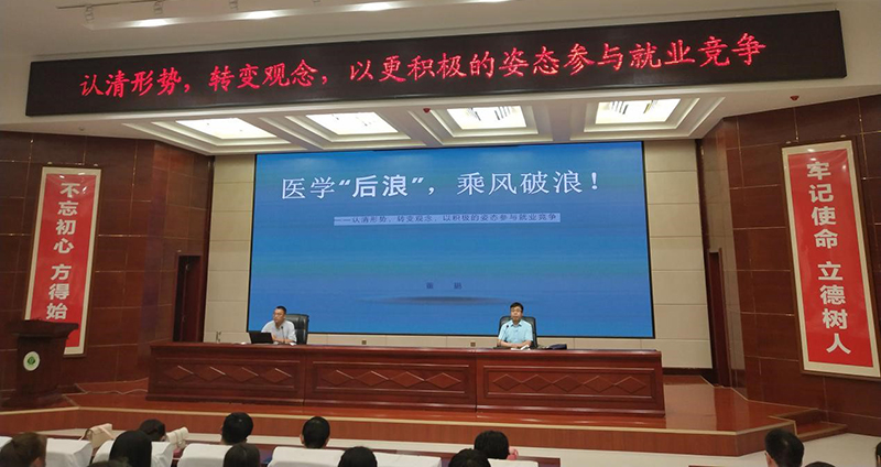 7月12日晚,護理系在大學(xué)生活動中心菁英廳、明遠(yuǎn)樓211、213、311等四個會場舉辦“護理系2021屆畢業(yè)生就業(yè)指導(dǎo)講座”,邀請學(xué)院招生就業(yè)處副處長董鵬同志作“醫(yī)學(xué)后浪、乘風(fēng)破浪”為主題的專題講座。護理系黨總支書記張建輝主持講座,護理系2021屆畢業(yè)班班主任、全體輔導(dǎo)員及2021屆全體畢業(yè)生共計647人參加講座。