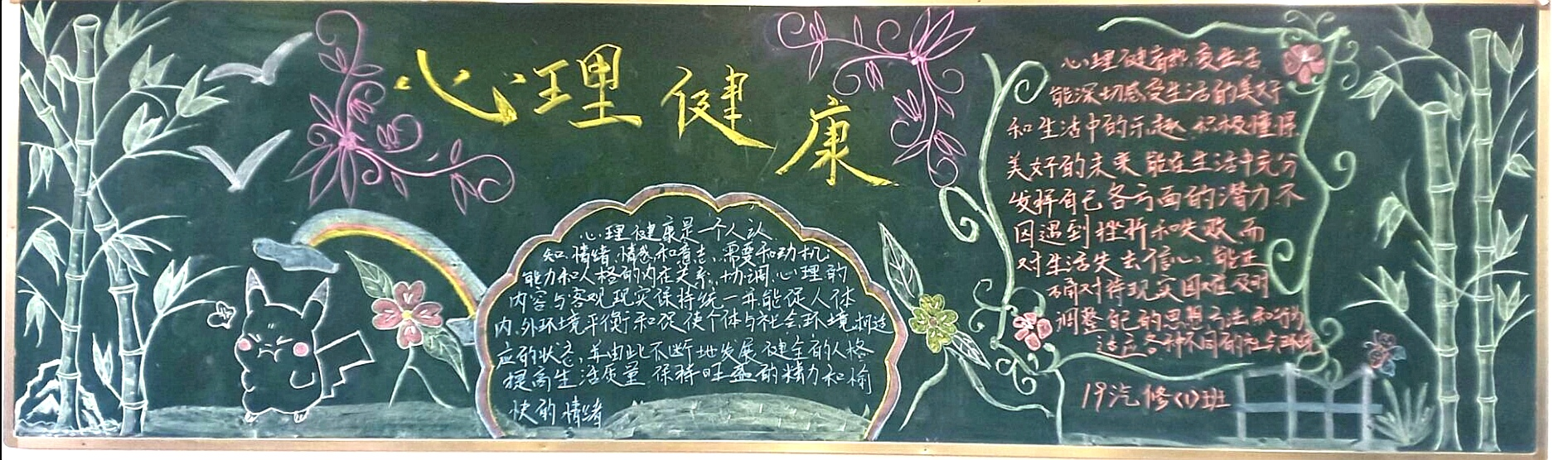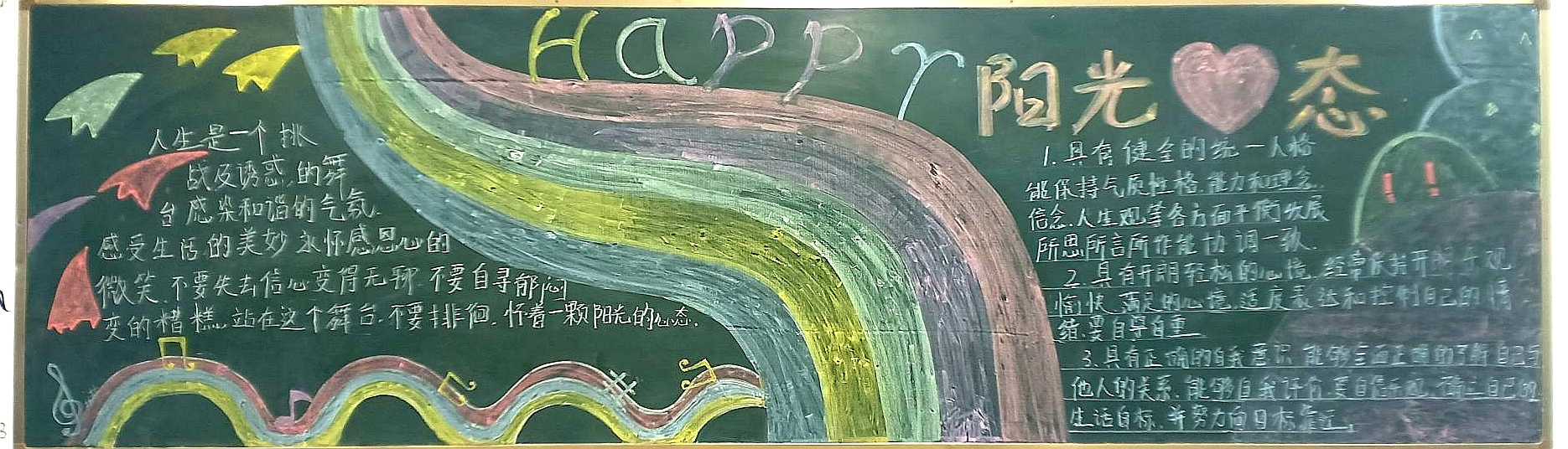 為進(jìn)一步提高大學(xué)生的心理素質(zhì),促進(jìn)大學(xué)生的身心健康和諧,宣傳普及心理健康知識,深入開展心理健康教育,我系結(jié)合學(xué)院特點,突出專業(yè)優(yōu)勢,在積極承擔(dān)和參與學(xué)校心理健康活動月的團(tuán)日活動的同時,各班開展了豐富多彩的以“心理健康”為主題的黑板報。