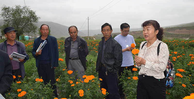座談會結(jié)束后,銀春花副教授做了題為“花?;ɑ苓x擇”的專題講座,就花海品種的選擇及種植養(yǎng)護(hù)的關(guān)鍵問題做了詳細(xì)的講解,參加培訓(xùn)的人員紛紛表示,收獲頗豐,為今后黑松驛鎮(zhèn)的在美化環(huán)境,花海建設(shè)中提供了依據(jù)。銀春花還在花?,F(xiàn)場指導(dǎo)農(nóng)戶開展了花卉的田間管理及病蟲害防治。