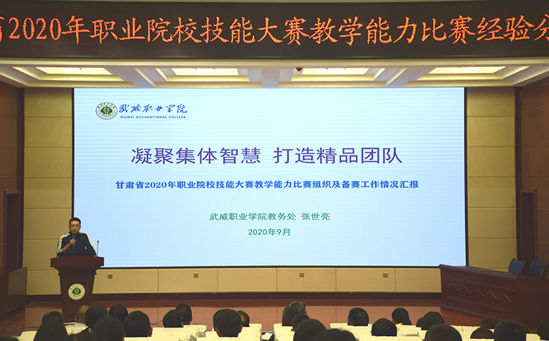 2020年9月2日上午,學院在菁英廳舉辦甘肅省2020年職業(yè)院校技能大賽教學能力比賽經(jīng)驗分享會,學院各級參賽隊員、院領導、中層以上管理干部、教學能力比賽指導組成員以及自愿報名參加分享會人員共210人參加,會議由學院黨委副書記翟存祥主持。