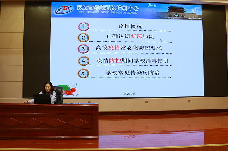 演練結(jié)束后,武威市疾控中心應(yīng)急辦公室主任、副主任醫(yī)師馬艷在大學(xué)生活動(dòng)中心菁英廳做了秋季開(kāi)學(xué)疫情防控知識(shí)、技能培訓(xùn)講座。
