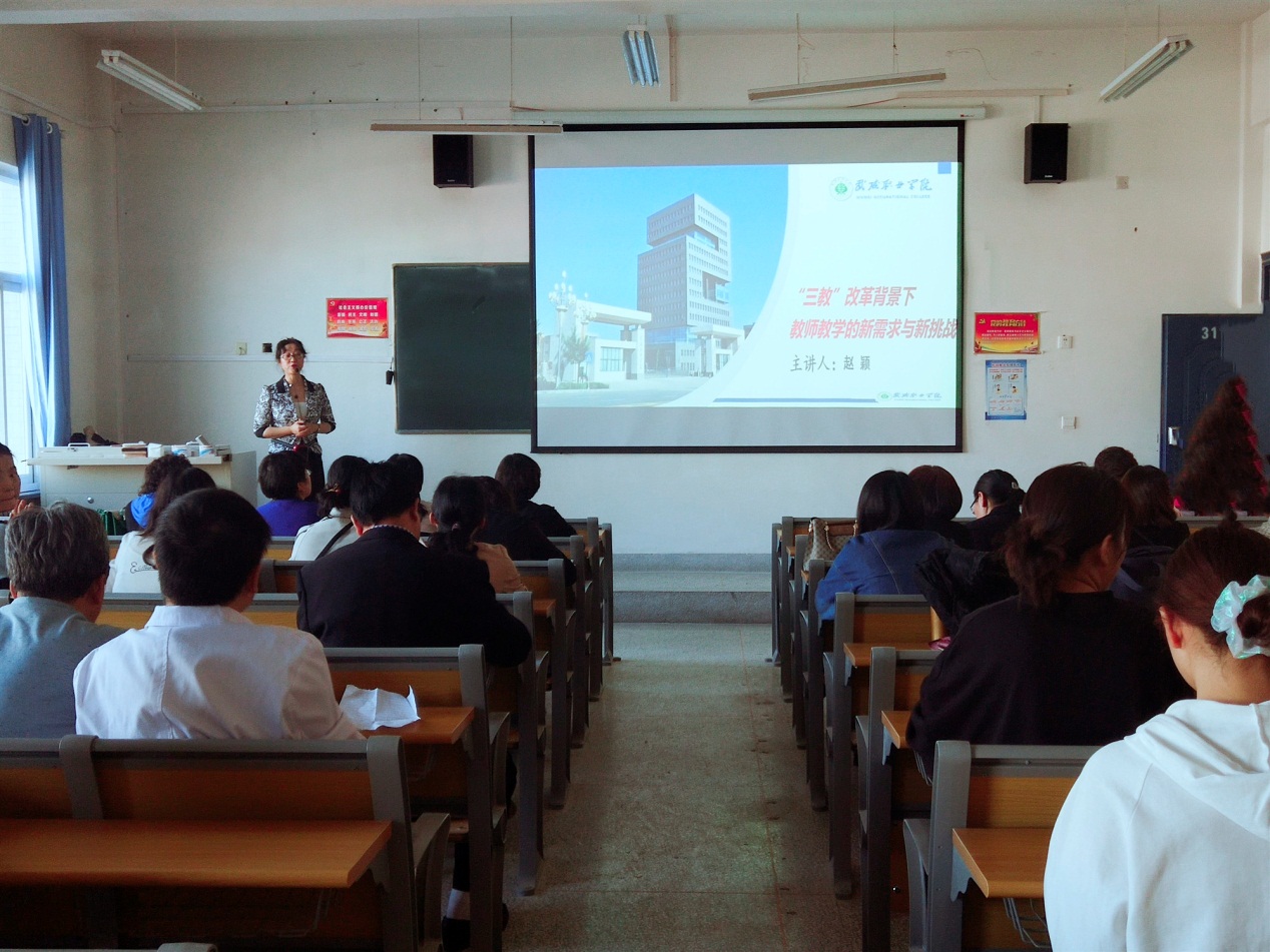赴揚(yáng)州參加學(xué)習(xí)的護(hù)理系基礎(chǔ)教研室教師趙穎就8月16日至22日期間的學(xué)習(xí)內(nèi)容向大家作了詳細(xì)匯報。此次匯報的內(nèi)容主要包括題目解析和“三教”改革的對策與舉措兩大部分。趙穎借助PPT,通過生動的語言,詳實(shí)的例子,結(jié)合我系實(shí)際情況,分享交流有關(guān)《“三教”改革背景下教師教學(xué)的新需求與新挑戰(zhàn)》的學(xué)習(xí)內(nèi)容,傳遞了職業(yè)教育改革和發(fā)展信息化發(fā)展的方向,介紹了“三教”改革背景下教師教育教學(xué)面對的新要求、新挑戰(zhàn)以及教師如何應(yīng)對這些挑戰(zhàn)并將自己的學(xué)習(xí)心得體會與大家作了分享。